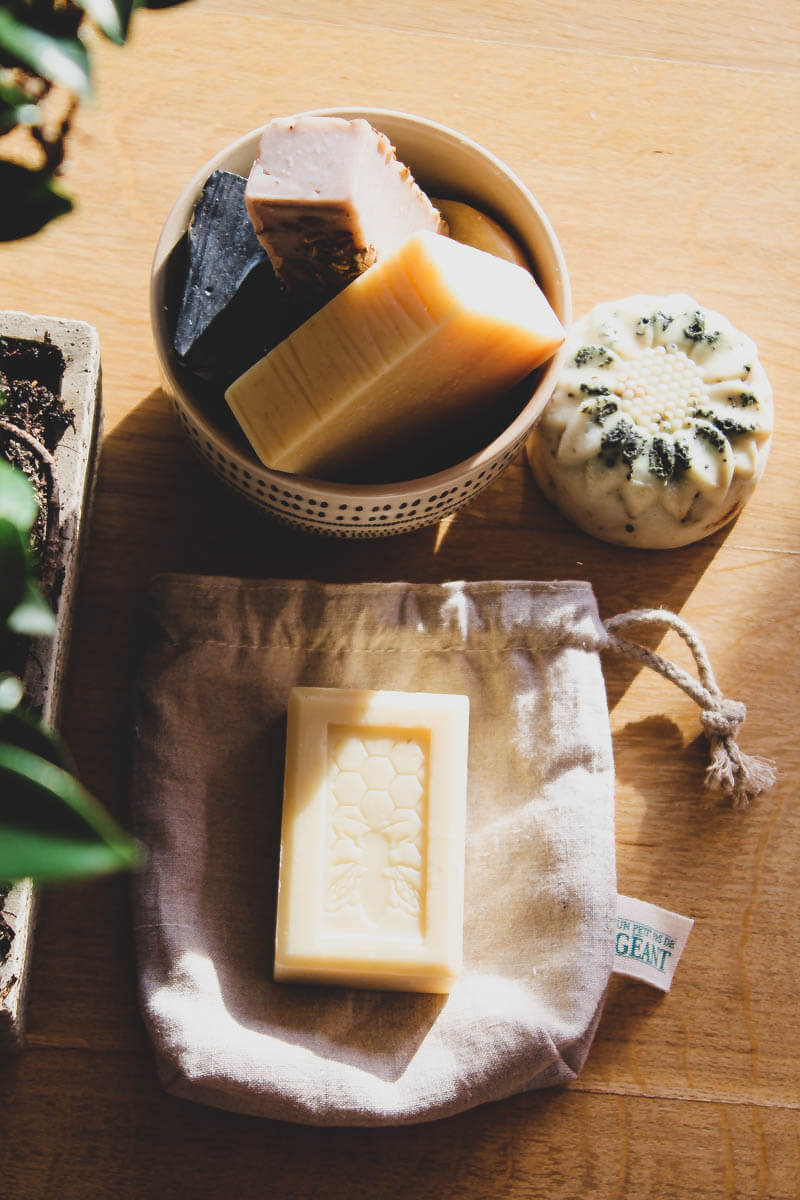 Pochette à savon imperméable en lin certifié GOTS et coton enduit certifié Oeko-Tex, fabriqué à la main en France, idéale pour transporter :